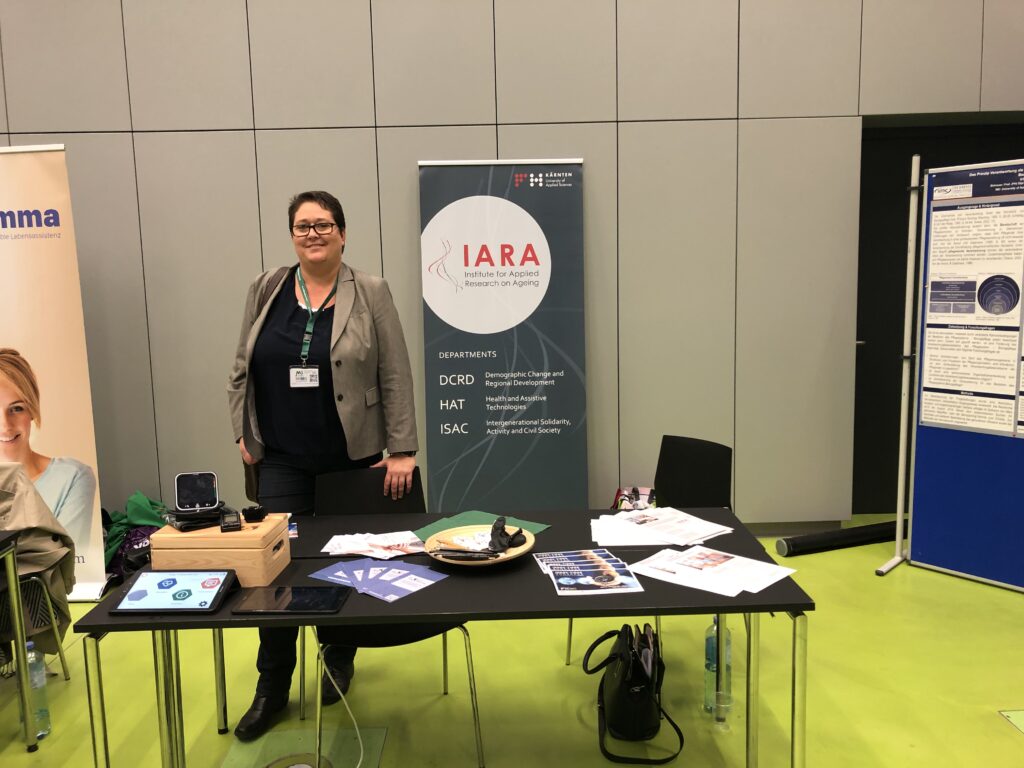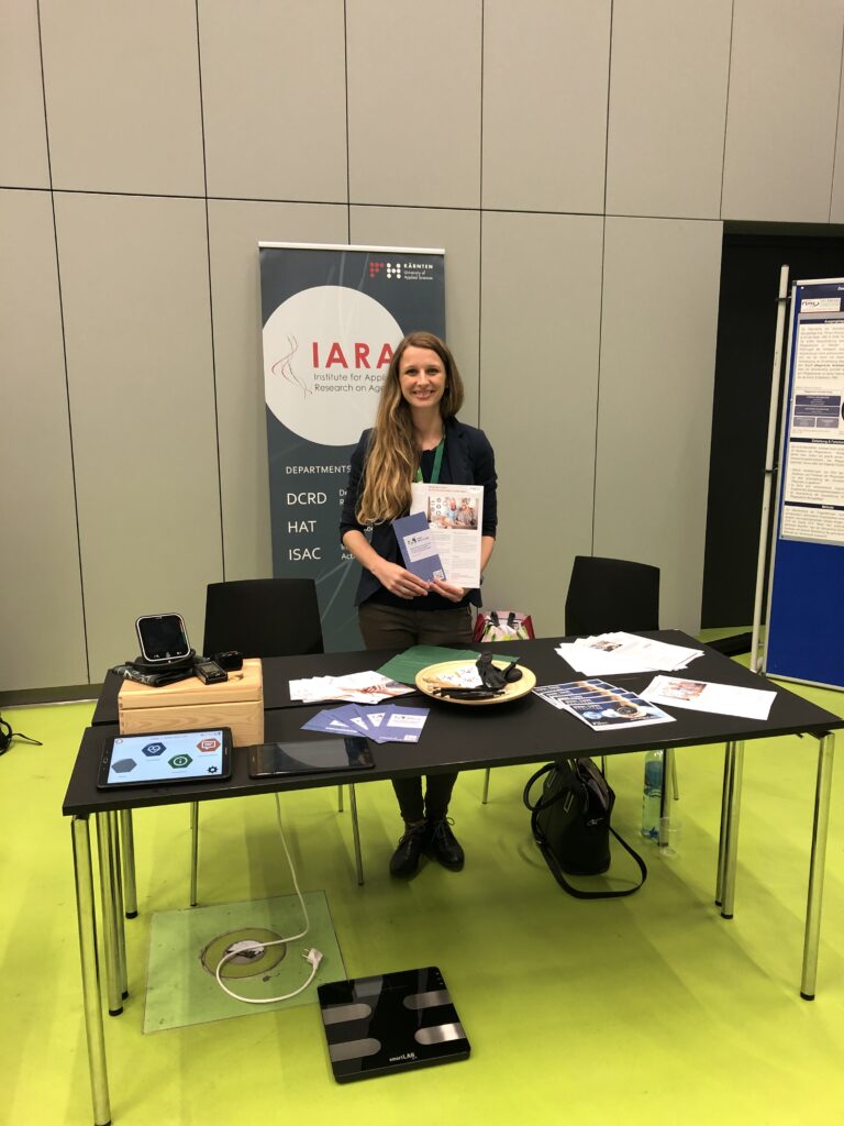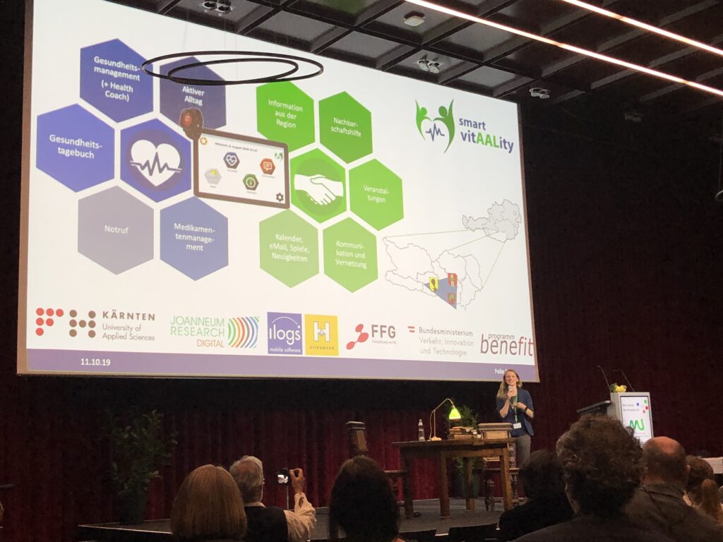 In the AAL session, Daniela Krainer presented the practical implementation of the Health Care Center Model and the results of Smart VitAALity project. Participants had the opportunity to test the Smart VitAALity System in the exhibition room at the booth of the Carinthia University of Applied Sciences. In various series of lectures, topics such as dementia, talking medicine, nutrition and fall risk, care of acute geriatric patients and polypharmacy in old age were examined and critically reflected.