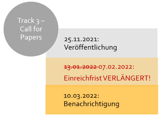 • Im gegenständlichen Call for Papers sind Forschende und Lehrende eingeladen, Short Paper zu den jeweiligen Panel-Themen des Track 3 einzureichen.